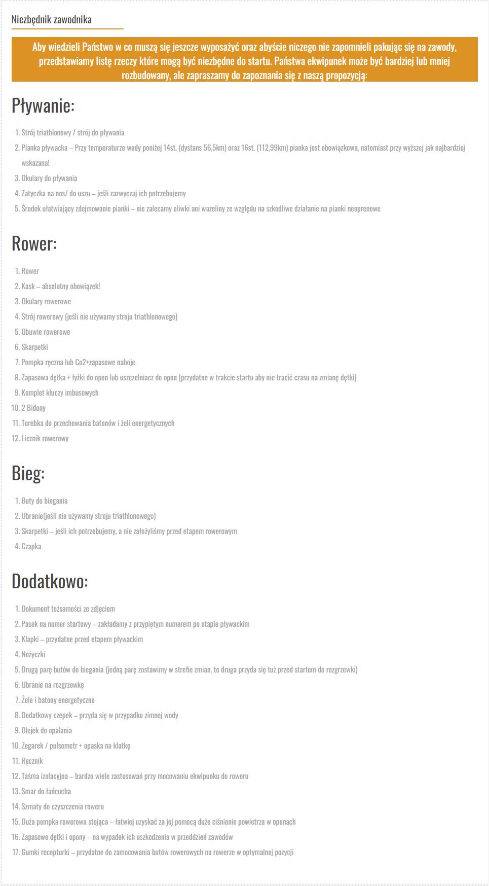 Rozwiązanie: Najprostsze rozwiązania często bywają najskuteczniejsze. Jeśli zawodnik nie będzie pakował się na ostatnią chwilę, a do tego w przygotowaniach będzie korzystał z tzw. checklisty, ryzyko popełnienia błędu zostanie ograniczone do minimum. Organizatorzy zawodów często udostępniają gotowe listy, z których można skorzystać.
