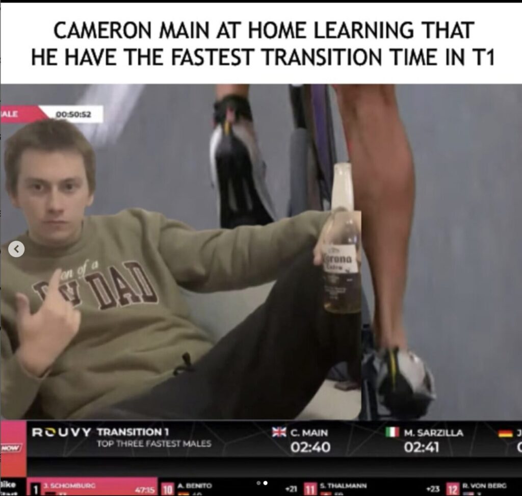Z problemami na trasie mierzyli się jednak nie tylko zawodnicy, lecz także realizatorzy. W pewnym momencie na ekranie transmisji pokazały się aktualne wyniki. Nie byłoby w nich nic dziwnego, gdyby nie fakt, że według realizatorów 1. miejsce zajmował biegnący w tyle Patrick Lange. Najszybszy czas zamiany w T1 miał natomiast Cameron Main, który… nie brał udziału w zawodach.