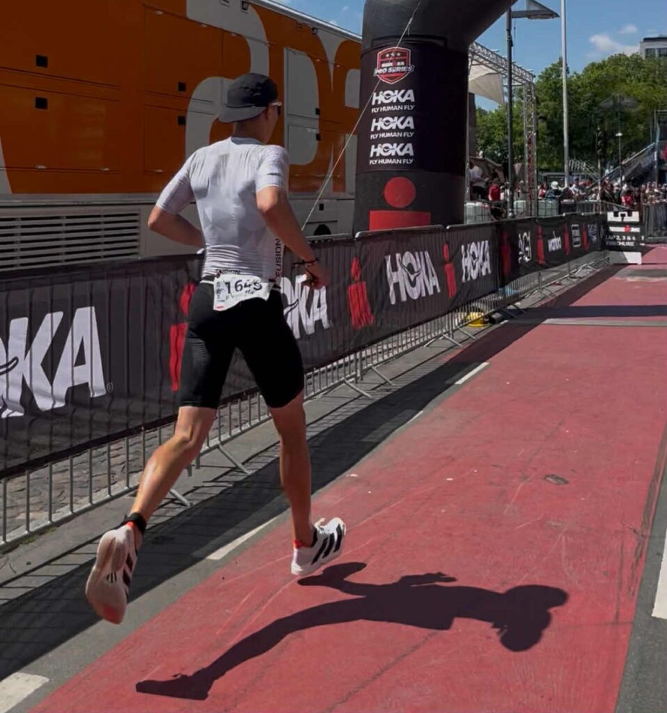 Mimo to progres jest zauważalny – udało się wyjść z wody w pierwszej dziesiątce, co daje mi dużą satysfakcję i motywację do dalszej pracy. Na etapie kolarskim miałem troszkę problemów technicznych – wypadające bidony, które na szczęście udało się uratować mimo straty mocowań, które zostały na trasie. Dodatkowo popełniłem kilka błędów, które kosztowały mnie cenne minuty. Pogoda również nie ułatwiała zadania – wysoka temperatura wymagała dużej uwagi w zakresie nawodnienia i chłodzenia. Mimo starań organizm lekko się „zagotował”, co pokazuje, że w tym obszarze jest jeszcze sporo do poprawy – zarówno w kwestii strategii, jak i przygotowania sprzętowego.