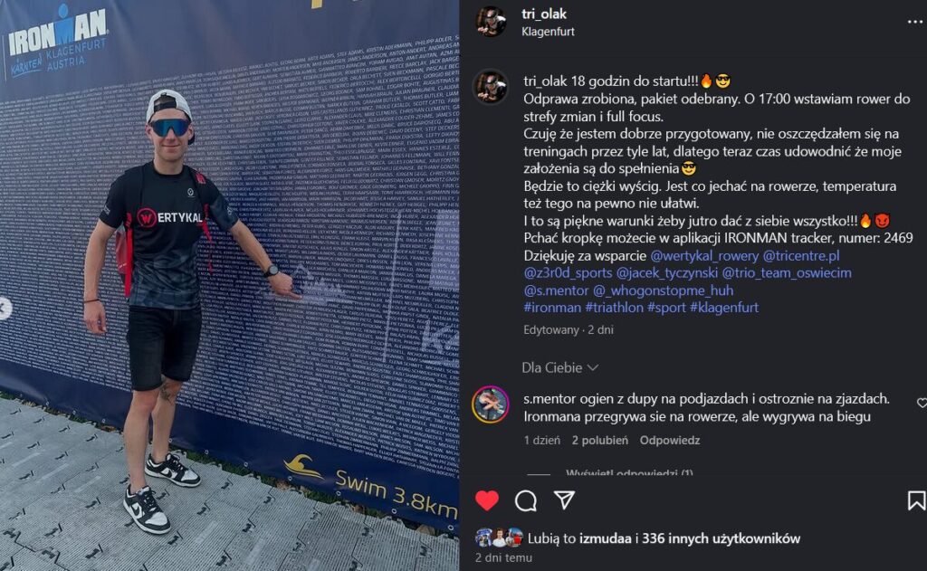 Jednym z zawodników, którzy wystartowali w Klagenfurcie, był Piotr Olak. Zawodnik kilka miesięcy temu napisał, że po kilku latach treningu to właśnie austriackie zawody będą jego debiutem na pełtym dystansie i chciałby wywalczyć w nich kwalifikacje na MŚ w Nicei. Cel ten wykonał w 100%!