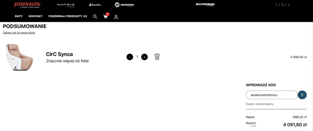 Pamiętaj: z kodem „akademiatriathlonu” otrzymasz 18% zniżki na wszystkie urządzenia na stronie Johnson Fitness.
