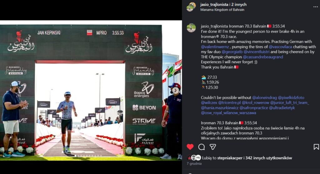 Podczas zawodów IRONMAN Bahrajn na połówce 19-letni Jaś Kępiński złamał 4 godziny jako najmłodszy zawodnik na świecie. Start na Bliskim Wschodzie postawił go – jak sam przyznaje – na granicy fizycznej i mentalnej wytrzymałości. Jak przebiegała rywalizacja? Z czego ją najlepiej zapamięta i jakie ma plany?