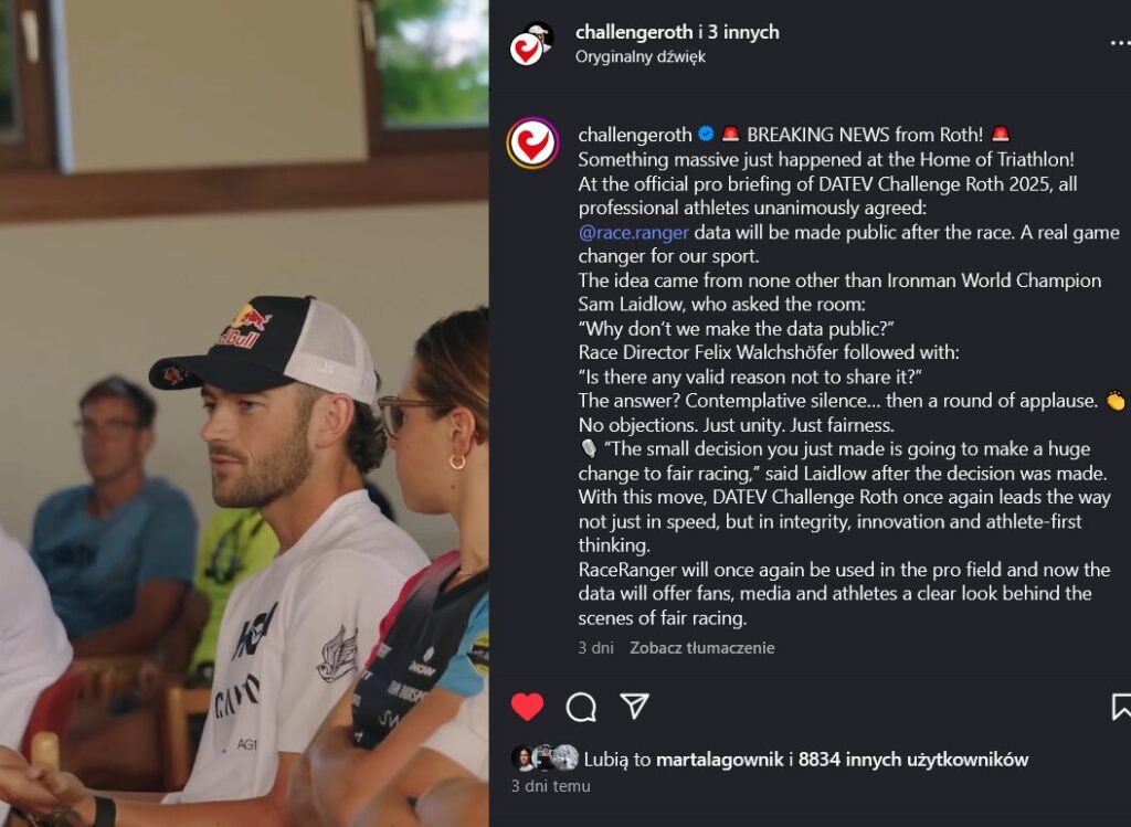 Twórcy RaceRangera chcą wykonać kolejny, milowy krok ku bardziej sprawiedliwemu ściganiu. Dane z Challenge Roth mają być publiczne, a ich udostępnienie zaproponował mistrz świata Sam Laidlow!