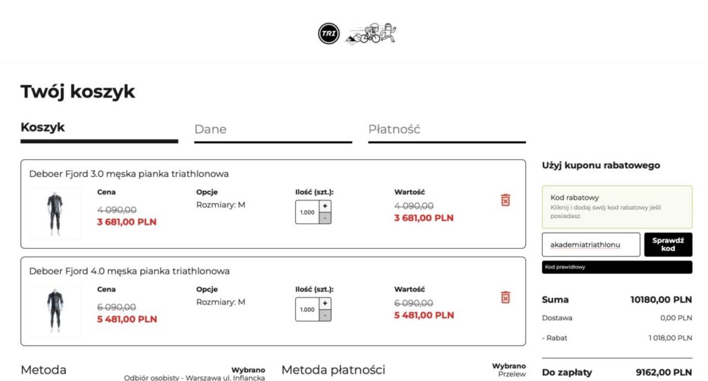 Kupując produkty Deboer w sklepie Trioutlet.pl, będącym ich oficjalnym dystrybutorem, otrzymasz aż 10% rabatu! Wystarczy, że w koszyku użyjesz kodu: akademiatriathlonu.