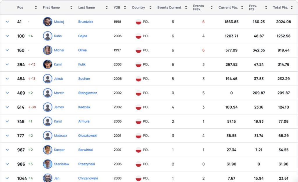 Na początku kwietnia 2025 Maciej Bruździak osiągnął historyczny wynik – po serii świetnych występów zameldował się na 86. miejscu światowego rankingu World Triathlon. Tym samym został pierwszym Polakiem od 13 lat, który znalazł się w TOP100 zawodników z całego świata. Teraz dołączył do niego Kuba Gajda.