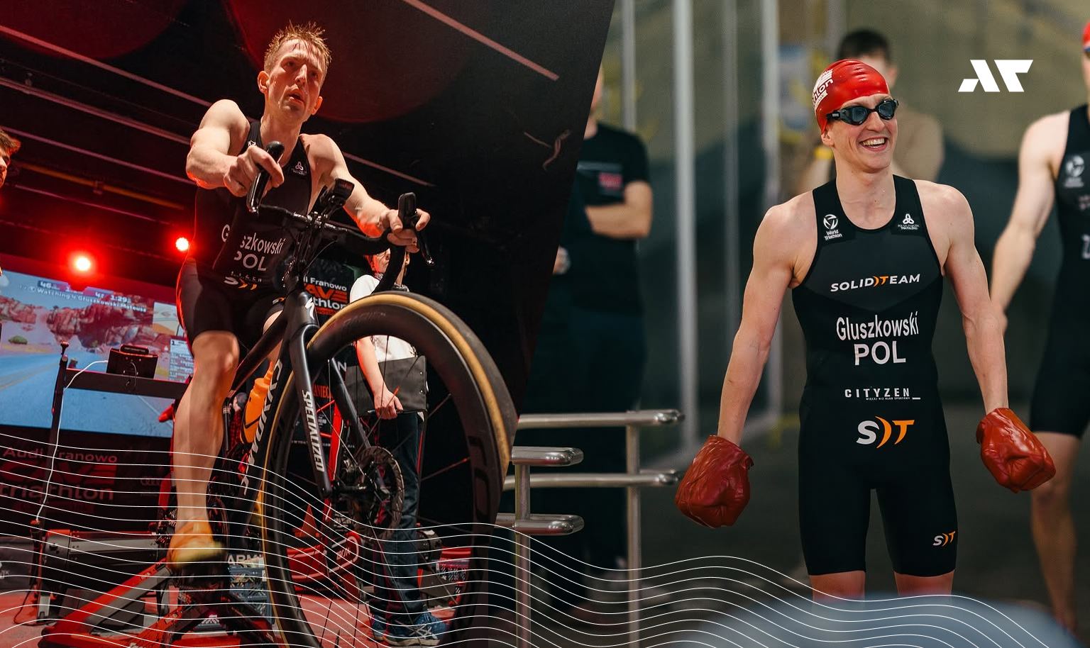 MG: Cieszę się szczególnie, bo pływanie i rower były bardzo miarodajne względem zeszłego roku — oba zrobiłem szybciej, a zwłaszcza drugi rower poszedł naprawdę dobrze. To było w planie. Wiedziałem, że tam mogę zyskać najwięcej. Bieganie — wiadomo, bieżnie były lekko podkręcone, więc nie porównuję czasów, ale czuję, że i tak poszło znacznie lepiej. W pierwszym biegu sprawdzałem, jak blisko są w stanie się zbliżyć chłopaki, a w drugiej serii już tylko kontrola. Początek drugiego roweru był trochę za mocny, więc końcówkę pojechałem spokojniej. Bieg zakończyłem z lekkim show, żeby domknąć całość z przytupem.