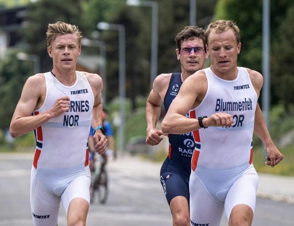 Iden i Blummenfelt od początku znajdowali się w czołówce wyścigu. Stornes został nieco z tyłu – aż do etapu biegowego. Kiedy oczy kibiców skierowane były na czołową czwórkę (Iden, Blummenfelt, Laidlow, Van Riel) Stornes zaczął nadrabiać starty. W połowie dystansu dołączył do Blummenfelta i Idena.