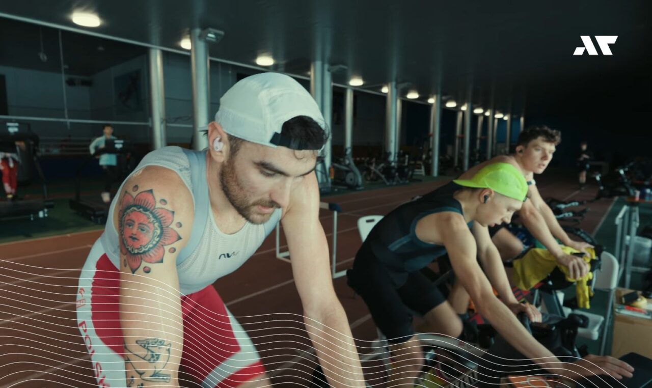 W swoim materiale zawodnik pokazuje jeden z mocniejszych dni obozu, czyli tzw. double treshold day, dwa akcenty progowe jednego dnia: rower oraz pływanie. Padają też konkretne liczby – waty na rowerze, tempo w basenie i wyniki pomiarów mleczanu. Nad wszystkim czuwa Filip Szołowski, który zapisuje wyniki.