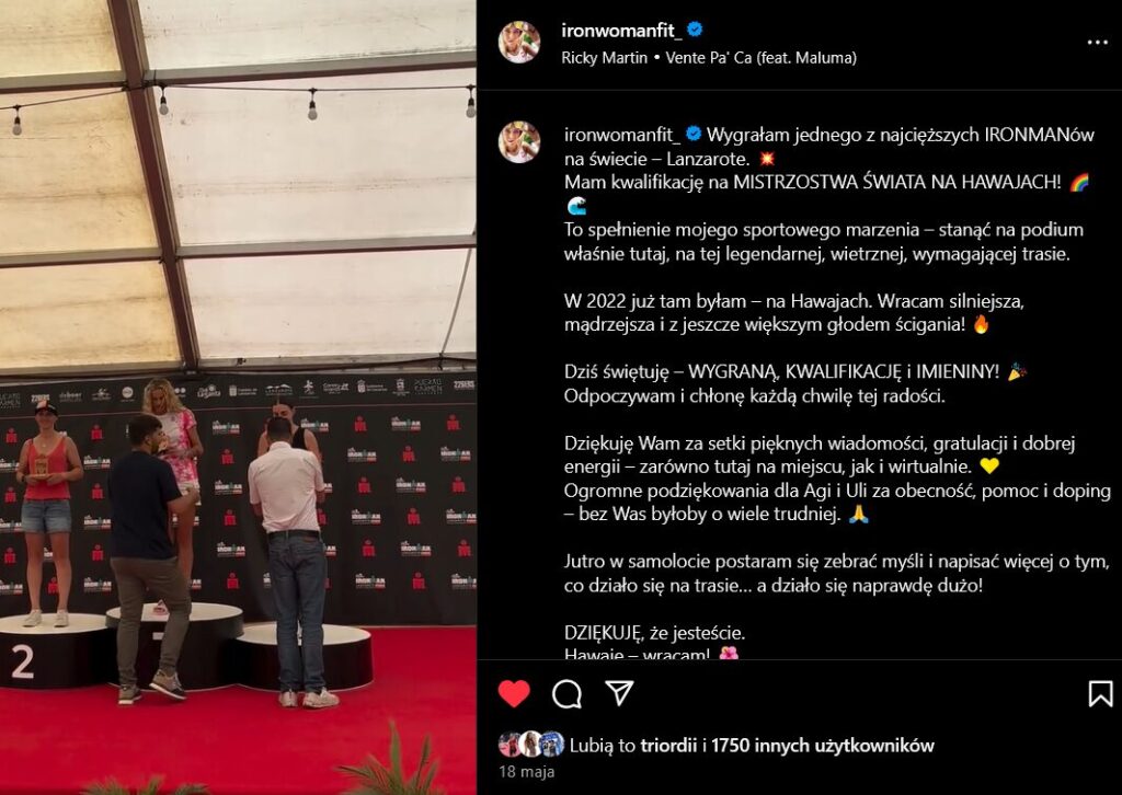 W połowie maja w Lanzarote rozegrany został jeden z najtrudniejszych Ironmanów na całym świecie. Wyścig znany jest między innymi ze względu na 2.500 metrów przewyższenia oraz silne wiatry boczne i czołowe, a wielu uczestników nie kończy zawodów. Ola Kieda z czasem 11:49:54 była jedną z najlepszych zawodniczek tego dnia!