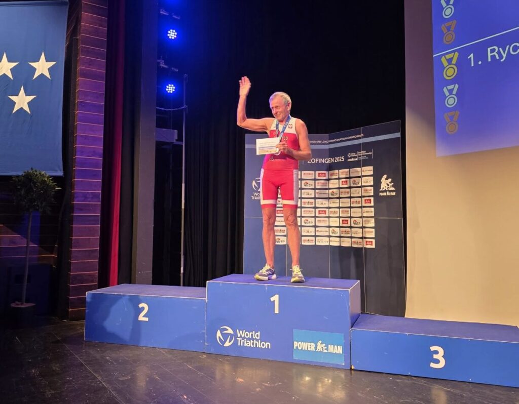 – 10 km biegu, 150 km na rowerze i 30 km biegu. 9 godzin non stop walki, ukończyć Powermana to wielki sukces. Suma przewyższeń na trasie rowerowej to ok. 2400 metrów. Na trasie biegu też dwa podbiegi, na których wszyscy (dosłownie wszyscy) szli, a nie biegli. Ja również, pierwszy raz w życiu szedłem podczas biegu, do tej pory nie miałem takiej przyjemności nawet na maratonach. W kategoriach wiekowych 65-75 kończy go około 50% zawodników, odważnych na udział i start w tym morderczym przedsięwzięciu jest też niewielu, wiedzą, co ich czeka. Dla przykładu w roku ubiegłym w mojej kategorii 70-74 nie było nikogo, gdyż nie da się Powermana przejechać i przebiec w tempie tzw. „turystycznym”, obowiązuje zasada regulaminowa cut-off i zawodnik, który przekroczy limit czasowy już na pewnym odcinku, jest natychmiast zdejmowany z trasy. A czasy dla grup wiekowych starszych są takie same jak dla grup pozostałych – wyjaśnia Wiesław Rychter.