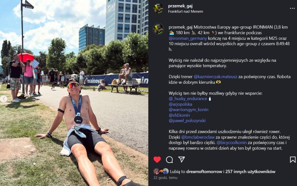 – Każdy trening i start sprawia mi mega zabawę. Nigdy nie nastawiam się na żaden wynik. Chciałem jak najlepiej bawić się tym startem. Czułem, że wykonaliśmy kawał dobrej pracy, pomimo że ten rok od początku nie zaczął się dla mnie zbyt optymistycznie. Start ten był po prostu wisienką na torcie. Więc na końcu pozostało tylko przepłynąć, przejechać i przebiec – opowiadał.