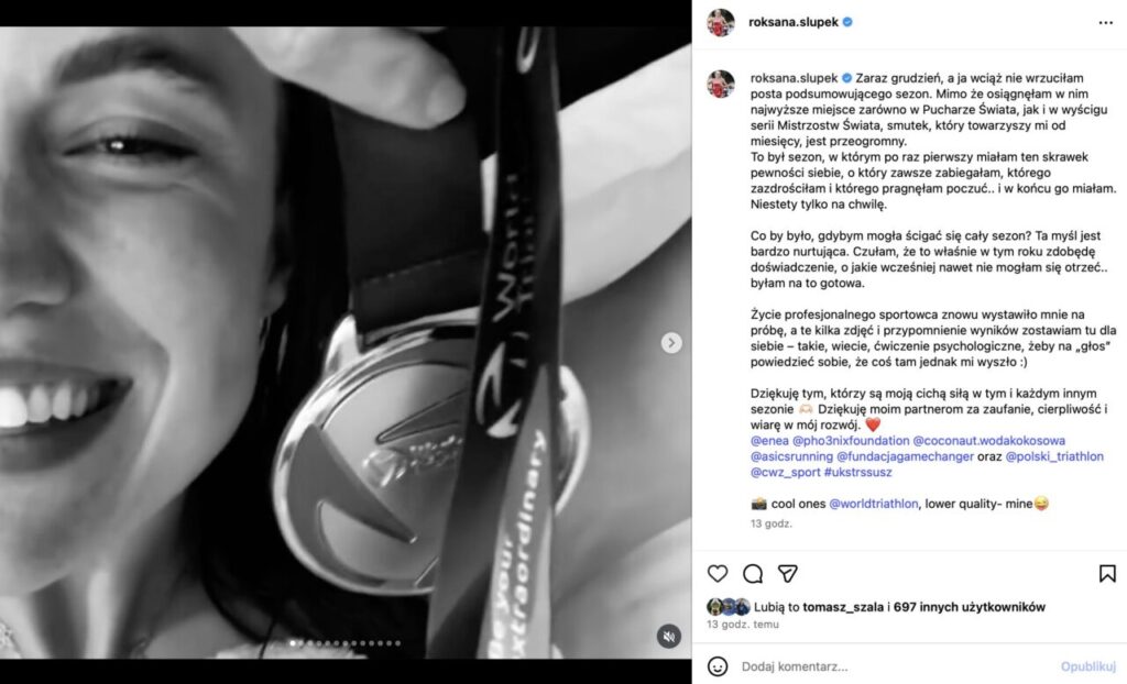 – Nic „poważnego” w badaniach, a jednak ciągnące się tygodniami. Brak odpowiedzi, frustracja, łzy i poczucie bezsilności. To trudne emocje – niepewność, brak sprawczości, zwątpienie. A przecież jeszcze niedawno zaczęłam sezon na podium Pucharu Świata i w top 15 WTCS, przez długie miesiące utrzymywałam się w czołówce światowego rankingu. Ktoś mądry powiedział mi: „Zobaczyłaś, do czego jesteś zdolna, i uwierzyłaś, że możesz.” I chyba właśnie dlatego obecna sytuacja tak boli – pisała Słupek i mówiła wprost: „to jeden z tych słabszych momentów w życiu sportowca, ale wiem, że minie”.