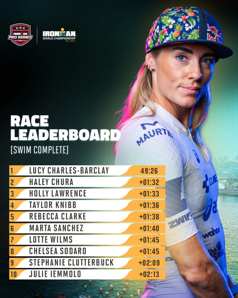 Jednym ze scenariuszy, którego mogliśmy spodziewać się po wyścigu w Konie, było szybkie pływanie Lucy Charles-Barclay. Mistrzyni z Kony już po 150 metrach wyszła na prowadzenie, mając za sobą między innymi Haley Churę, Holly Lawrence oraz Taylor Knibb.