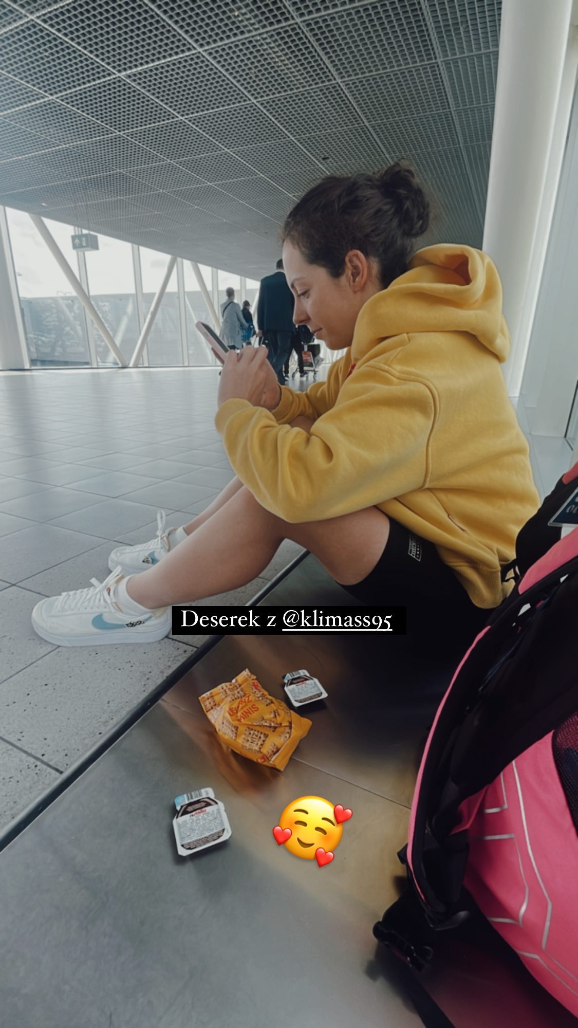 Paulina Klimas podaje, że transfer z Polski do Hiszpanii zajął jej aż 17 godzin! Z jej relacji można wywnioskować, że gro tego czasu trzeba było przesiedzieć na lotnisku w Amsterdamie. Paulinę w obiektywie aparatu uchwycił towarzysz niedoli Michał Oliwa. On również musiał odsiedzieć swoje.