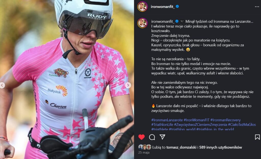Po mistrzostwach świata w Nicei miałam już pełne przekonanie, że mogę dobrze pobiec pełnego Ironmana. Tam udowodniłam sobie, że potrafię znieść ból, że mam głowę do długiego dystansu. Lanzarote było więc testem – ale nie takim, który robisz z ciekawości. Tylko takim, który ma ci dać konkretny efekt. Jechałam tam z planem i z ambicją. I z wiarą, że jestem gotowa na więcej.