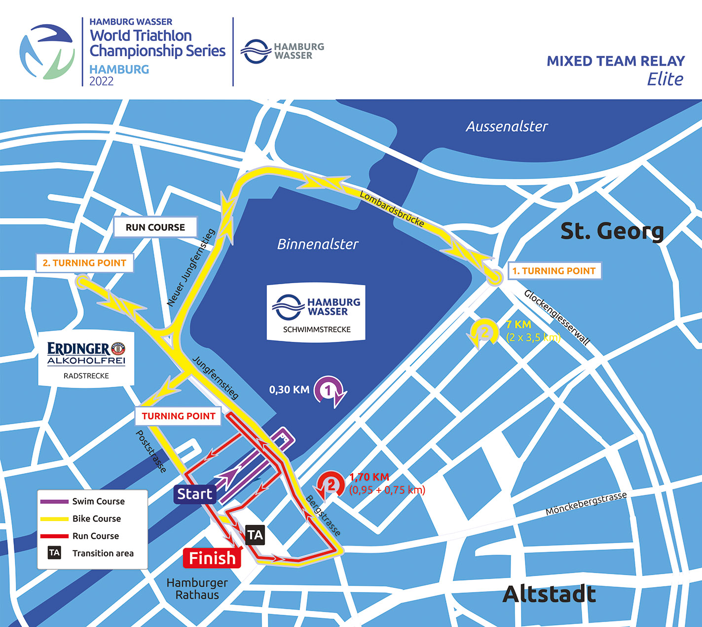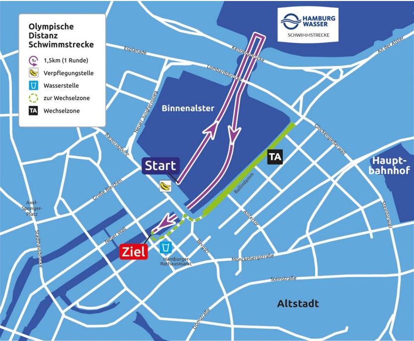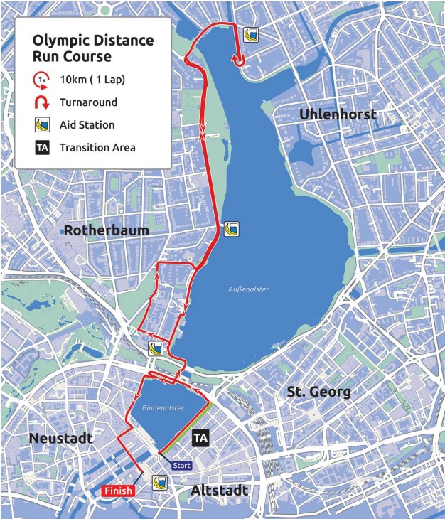 Wyścig odbywa się w samym sercu Hamburga. Konkurencja pływacka rozgrywana jest na jeziorze Alster. Trasa wyścigu na dystansie sprinterskim przebiega m.in. koło pięknego zabytkowego ratusza. Na dystansie olimpijskim do zobaczenia jest jeszcze więcej: Nowe Miasto, Stare Miasto, wybrzeże w dzielnicy St. Pauli, dzielnica Altona. Na całej długości trasy zawodnikom towarzyszą kibice. Tłumy kibiców. Zawodnicy, którzy tam startowali, mówią, że emocje są niesamowite.